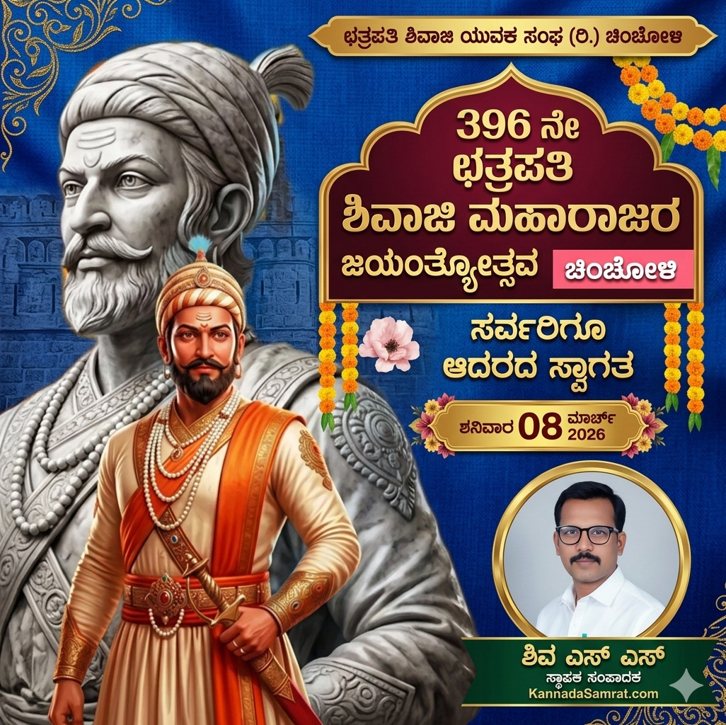 ಚಿಂಚೋಳಿಯಲ್ಲಿ ಇಂದು ಐತಿಹಾಸಿಕ ‘ಹಿಂದೂ ಜಾಗೃತಿ ಸಮಾವೇಶ’: ಛತ್ರಪತಿ ಶಿವಾಜಿ ಮಹಾರಾಜರ 396ನೇ ಜಯಂತ್ಯೋತ್ಸವದ ಸಂಭ್ರಮ March 8, 2026